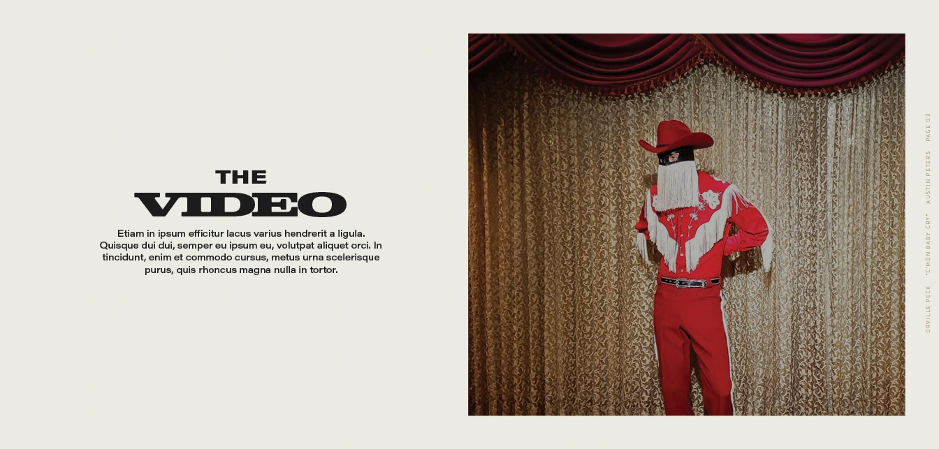 Orville Peck C'mon Baby, CryMusic Video TreatmentVisual research and design.Back | NextThis is an abbreviated version of the final treatment and was intended for internal reference. The copy has been swapped for the director’s discretion Back To Top